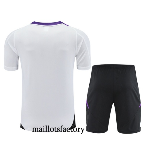 Maillotsfactory : Nouveau Grossiste Maillot d'entrainement Real Madrid Enfant + Shorts 2025/26 Blanc/violet Kit | Thailande version